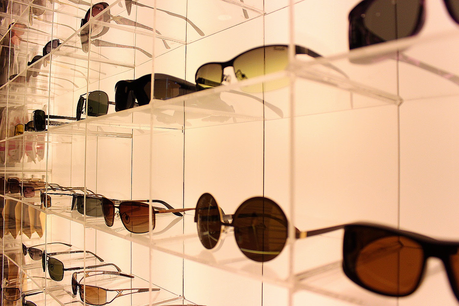正反面都有擺設太陽眼鏡,種類很多可以挑選。