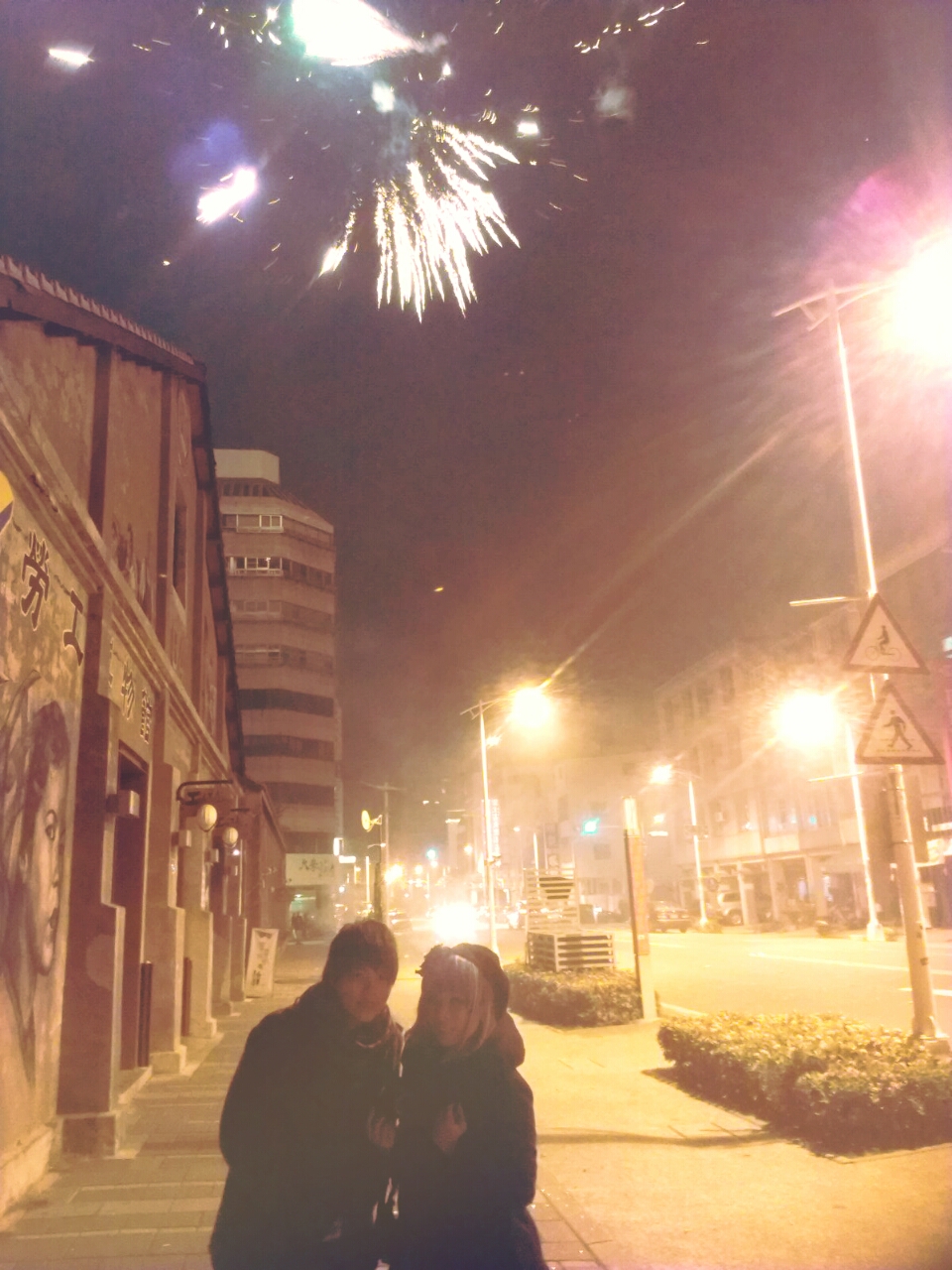 很幸運駁二有一群年輕人在放煙火,於就是偷偷摸摸跟他們一起享受煙火。