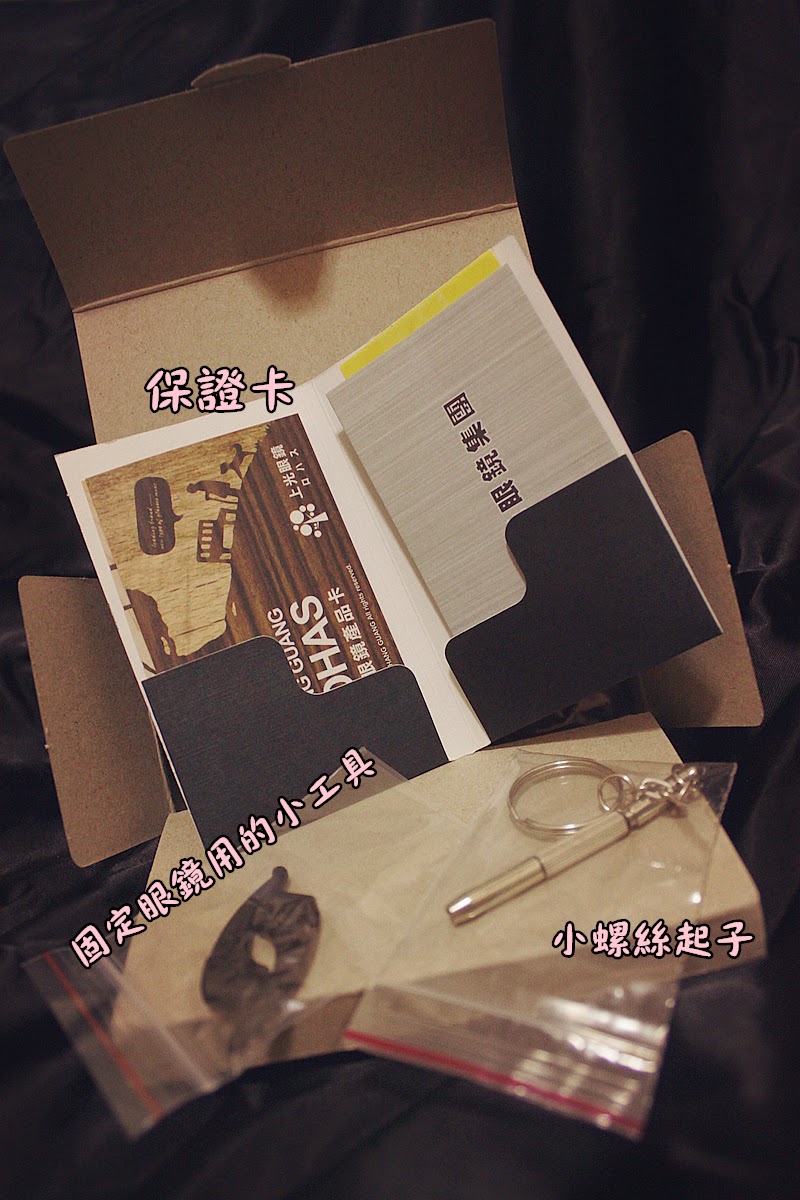 再來就是附贈的小螺絲起子可以簡單地自行調整眼鏡,如果臨時出問題還有補救的餘地,當然之後還是要帶回去請專業的服務人員幫忙檢查啦!